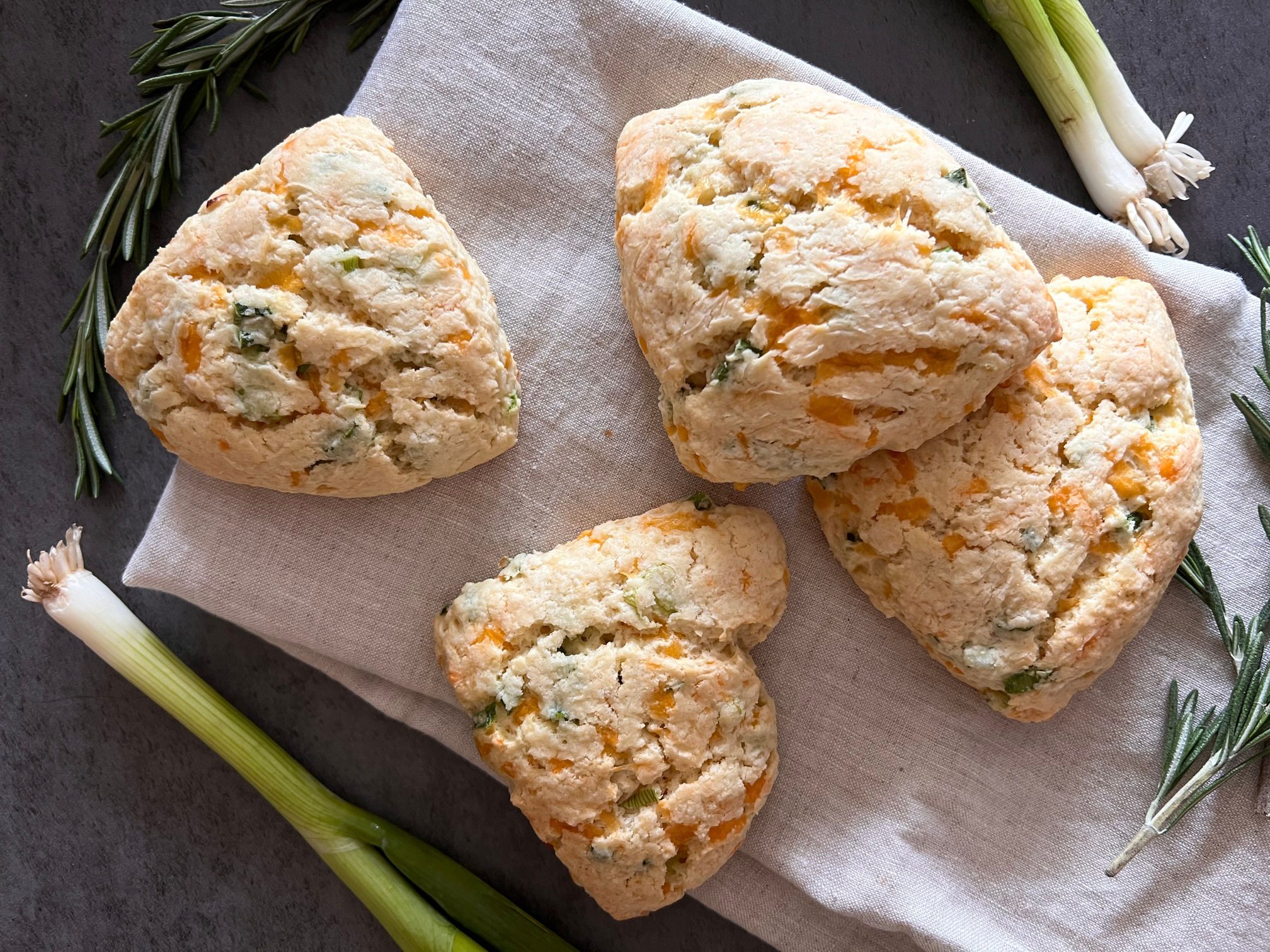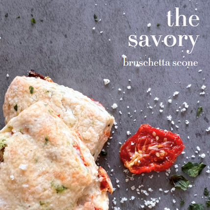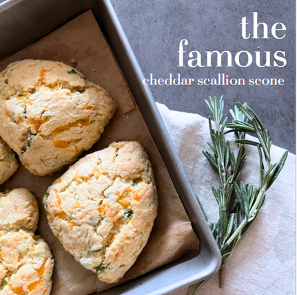 Our flavors will vary, but you can always count on our our famous Cheddar & Scallion scone to be included.